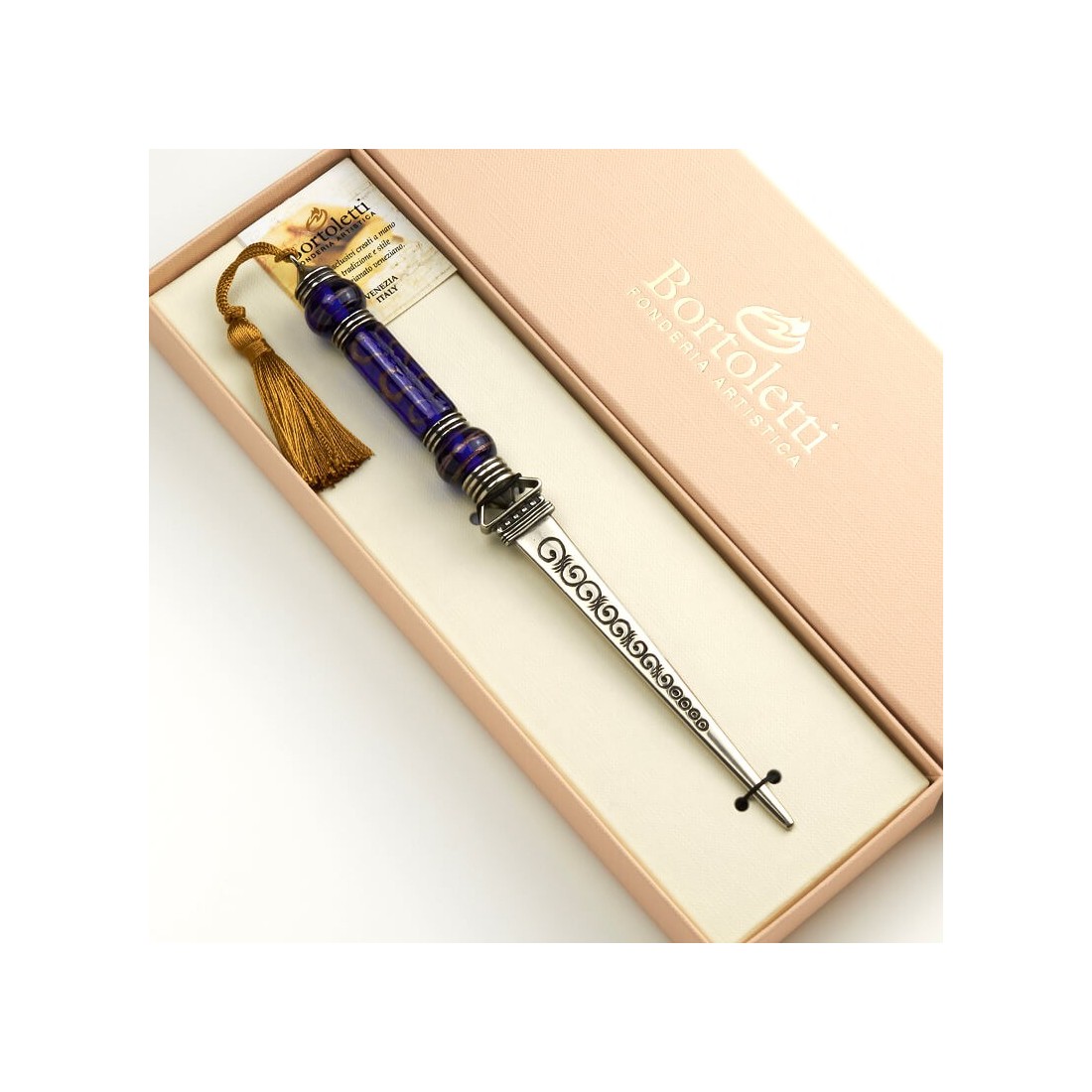 Bortoletti Fonderia Artistica i Venedig er kendt for at producere fint udformet skrive tilbehør inspireret af italienske dekorative traditioner. Deres samlinger kombinerer kunstnerisk metalarbejde, murano glas og hånd færdige detaljer for at oprette skrivebordsværktøjer, der er både funktionelle og visuelt karakteristiske.