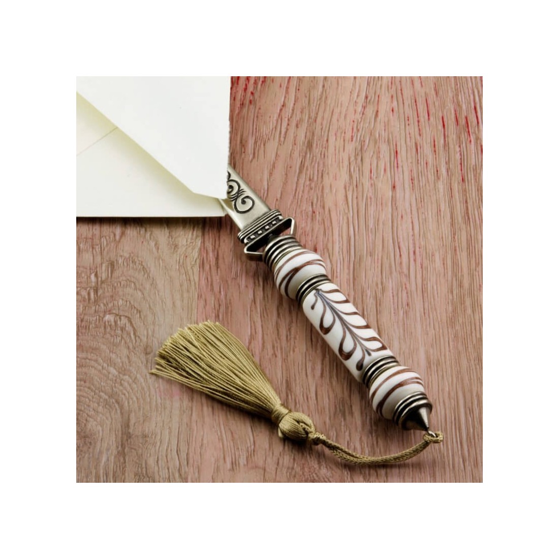 Bortoletti Brevåbnere gør elegante gaver til forfattere, samlere og enhver, der værdsætter traditionelle skrivebordstilbehør. Kombinerer italiensk håndværk med dekorative murano glas og bronze detaljer, denne brevåbner er en karakteristisk gave til elskere af fine papirvarer, klassiske skriveinstrumenter og arv-inspirerede skrivebordsstykker.