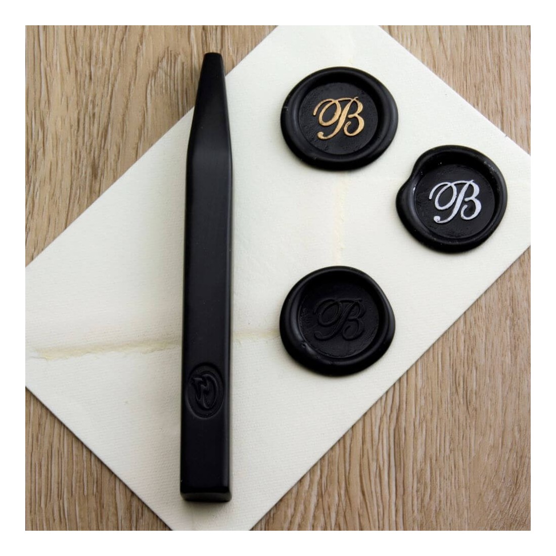 Sort Sealing Wax tilbyder et dristigt og sofistikeret udseende, hvilket gør det særligt velegnet til formelle papirvarer, certifikater, luksusemballage og moderne monokrome designs. Den stærke kontrast fremhæver indgraverede sæl detaljer med ekstraordinær klarhed.