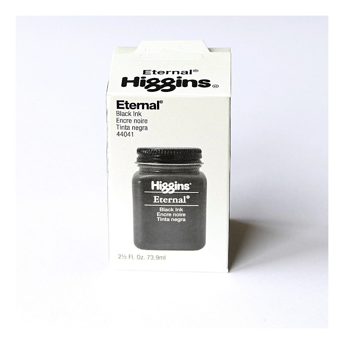 Higgins Evig Ink er en permanent, vandtæt sort blæk pålideligt af kalligrafer, illustratorer og kunstnere i generationer. Leveres i en større 73.9ml (2,5 fl oz) flaske, det giver glat flow og dyb arkivkvalitet farve ideel til dip pen kalligrafi og tegning.