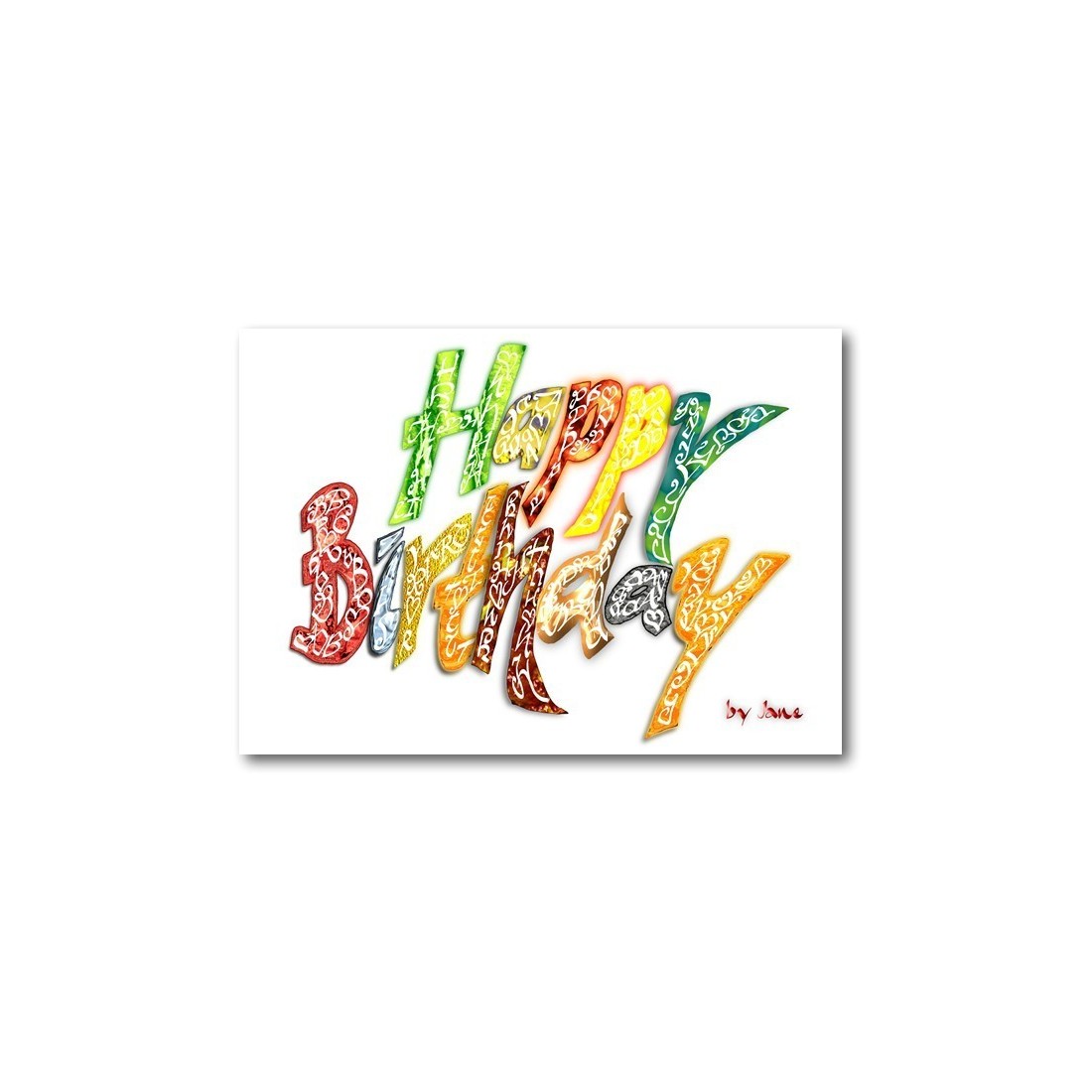 Den lykkelige fødselsdag generelle lyskort fra Calligraphy Arts Er et lyst og muntert fødselsdagskort designet af Jane, med flerfarvet kalligrafisk bogstaver på en ren hvid baggrund for en frisk og stilfuld finish.
