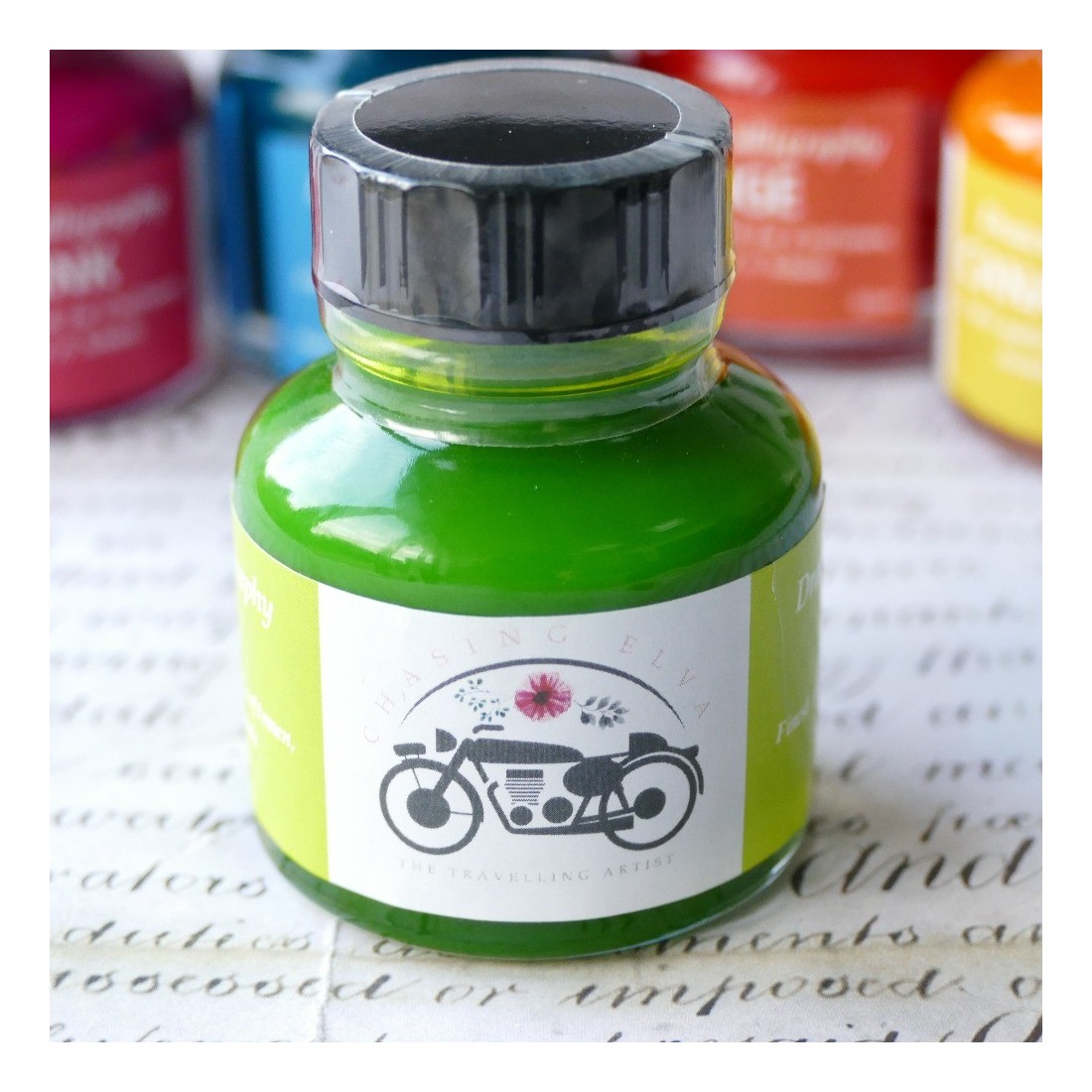 Chasing Elva Kalkgrüne Acryl-Tinte ist eine helle, ausdrucksstarke Kalligraphie-Tinte für kreative Dip-Stift-Schriftzug und dekorative Kunstwerke. Sein lebendiger Kalkgrün-Ton fügt moderne Kalligraphie- und künstlerische Beschriftungsprojekte auffällige Farbe und Energie hinzu.