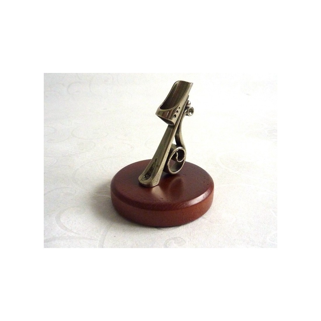 Die Einfachheit der Dekorationen mit der Ausdruckskraft der Materialien kombiniert. Dieser Stifthalter ist aus Holz gefertigt und fein gearbeitete Neusilber. Es gibt zwei Versionen. Eine für ein Glas oder Holz Stift. Die andere ist für einen Federfeder konzipiert. Beide Stile sind elegant Stücke, die Persönlichkeit zu verleihen, um Ihren Schreibtisch.