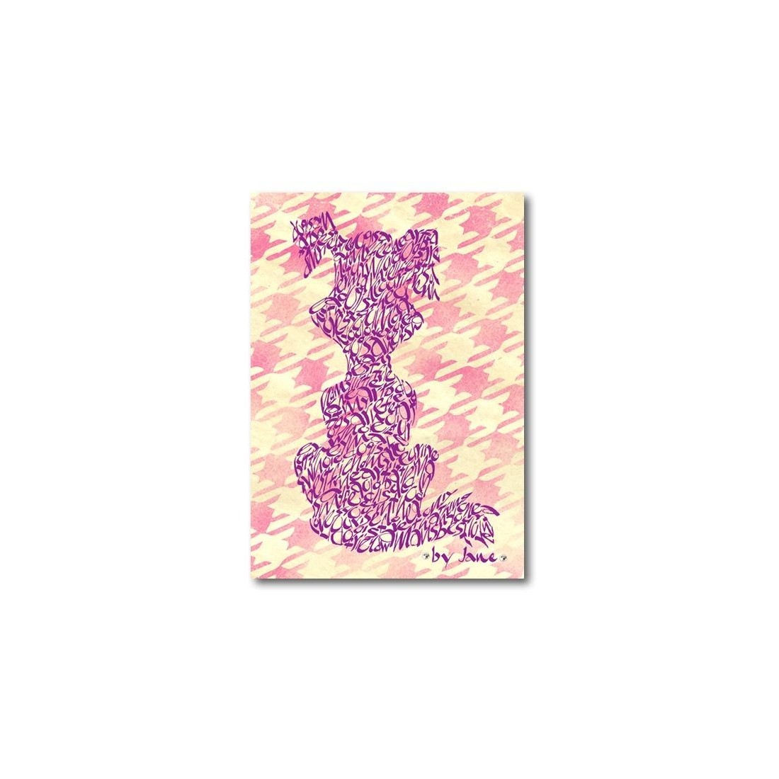 Die rosa Cartoon-Dog-Karte von Calligraphy Arts ist eine einzigartige handgefertigte Grußkarte, die von Jane entworfen wurde, der mit einem Hunde-thematischen Kalligraphie-Wortkunst einschließlich "mein kleiner Hund - ein Herzschlag an meinen Füßen" und "Hund ist der beste Freund eines Mannes" auf einem rosafarbenen Dogtooth-Hintergrund.