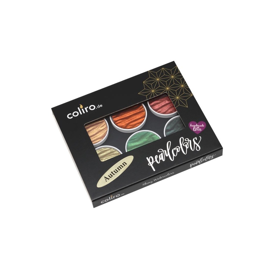 Coliro "Autumn" pearlcolor set is a beautifully balanced collection of six shimmering shades inspired by the warmth, richness and depth of the autumn season. Supplied in a metal box, this palette is ideal for artists, calligraphers and makers who want metallic colour with a natural, earthy character and long-lasting performance.
