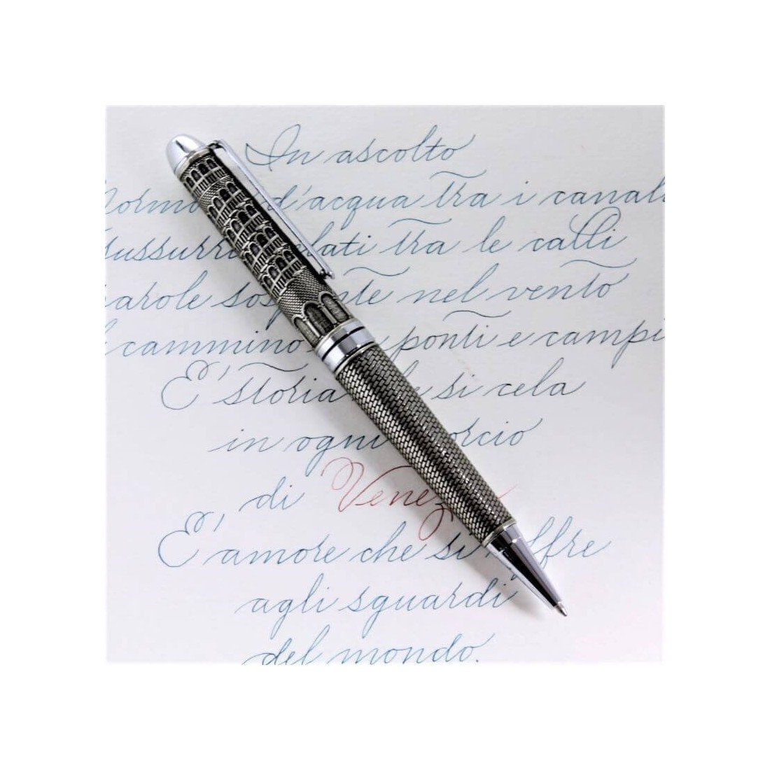 The Bortoletti Contarini ballpoint pen is a refined writing instrument inspired by the history and architectural character of Venice. Dedicated to the Contarini palace and the celebrated Bovolo staircase, this beautifully made pen combines practical writing performance with decorative Italian craftsmanship, making it a distinctive choice for daily use, desk display, and gift giving.
