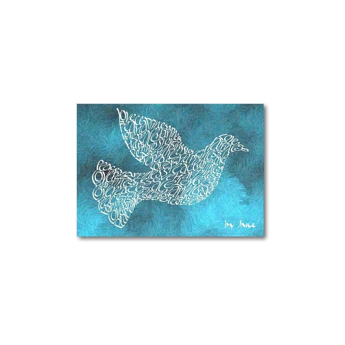 The dove of peace card is a graceful and uplifting greeting card from Calligraphy Arts, designed by Jane to help you send peaceful thoughts and heartfelt wishes in a more artistic way. Featuring a white dove on a swirling blue and green impressionist background, this design has a calm, thoughtful feel that makes it suitable for many different occasions.