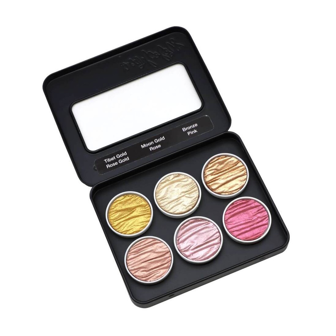 Coliro "Vintage" pearlcolor set is an elegant six-colour palette inspired by warm metallics, soft rose tones and timeless creative style. Presented in a metal box, it includes "Tibet Gold", "Moon Gold", "Bronze", "Rose Gold", "Rose" and "Pink", making it ideal for decorative calligraphy, illustration and refined artwork with a graceful vintage feel.