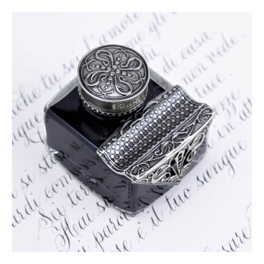 El tintero se suministra con Bortoletti - Hamburg tinta de caligrafía en Cagliostro Black. Inspirado por las tradiciones alquímicas, esta tinta ricamente pigmentada ofrece un color intenso intenso que sigue siendo fuerte incluso después del secado.