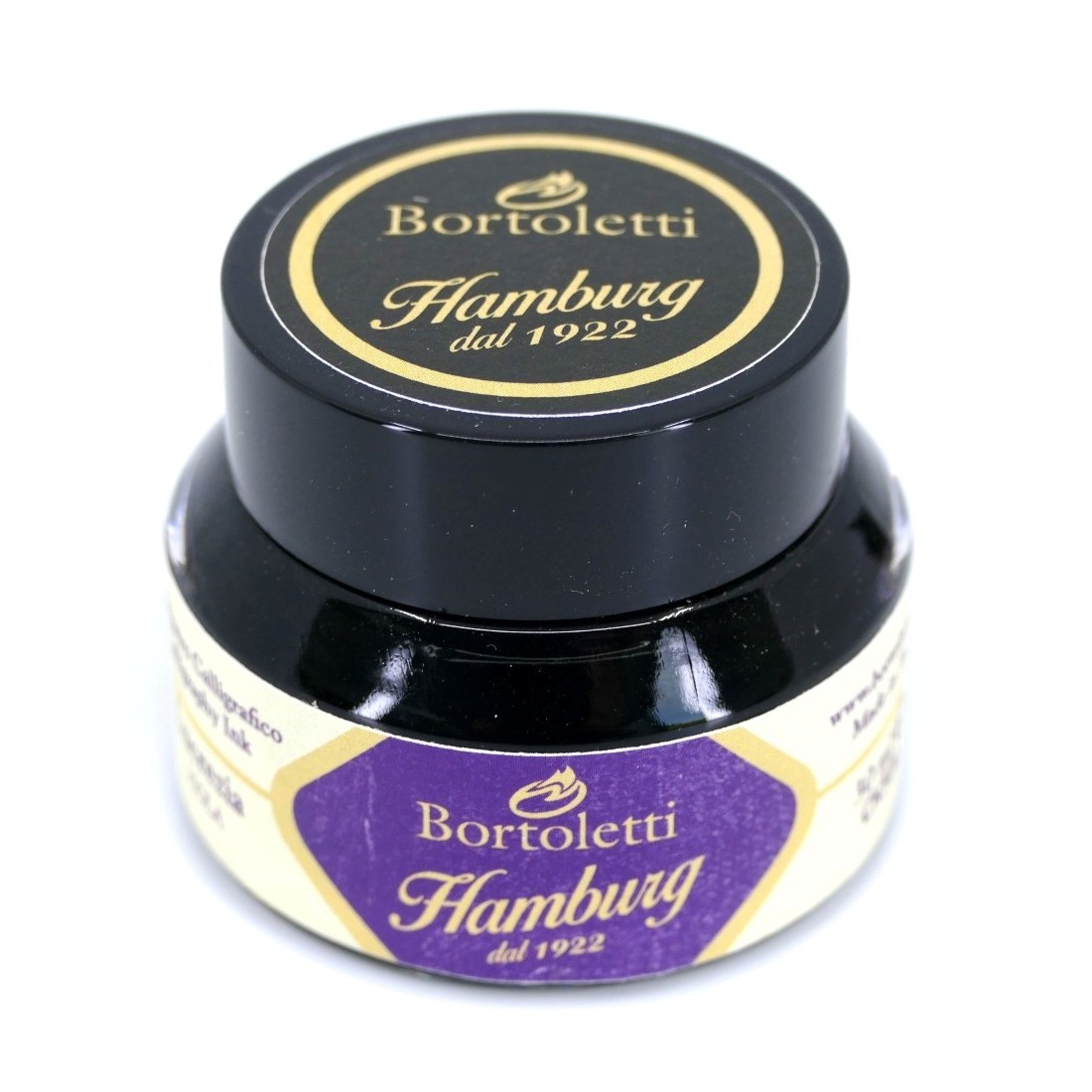 Esta tinta forma parte de la Bortoletti Rango de tintas de caligrafía fabricadas en Italia por Hamburg, combinando la artesanía tradicional con experiencia profesional de producción de tinta.