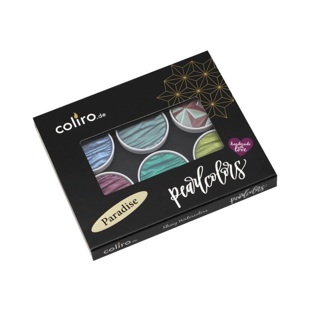 Coliro Las perlasculas están hechas a mano en Alemania que usan pigmentos de mica y goma arábiga, creando colores metálicos y brillantes ricamente pigmentados que se activan suavemente y brillan bellamente. Su fórmula amigable, un rendimiento constante y una excelente resistencia a la luz, los ha convertido en un favorito con caligráficos, artistas y profesionales creativos de todo el mundo.