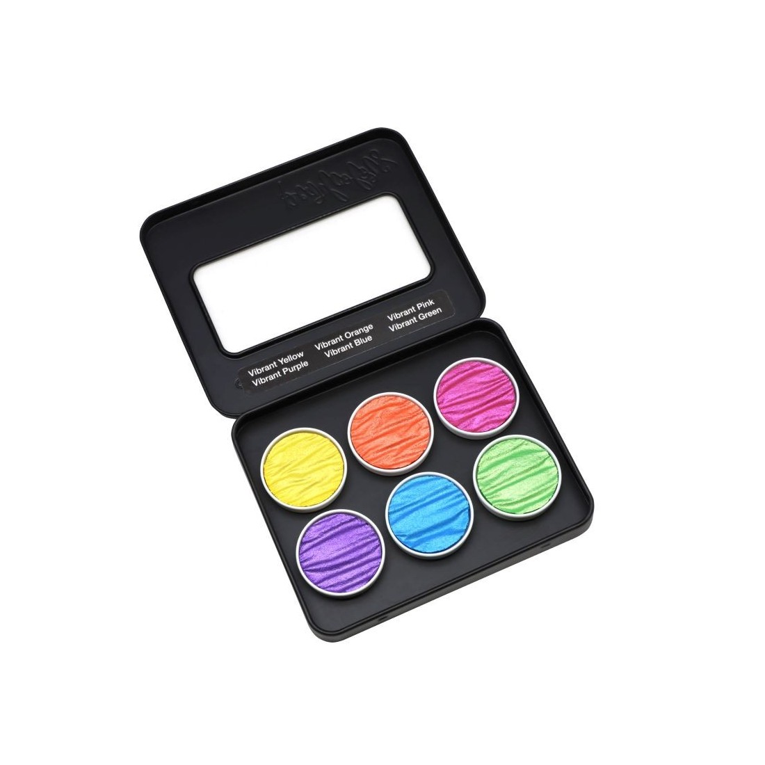 Coliro "Vibrant" El juego de Pearlcolor es una paleta de seis colores brillante creada para una obra de arte brillante y confidentes con un brillo metálico excepcional. Presentado en una caja de metal, incluye. "Vibrant Yellow", "Vibrant Orange", "Vibrant Pink", "Vibrant Purple", "Vibrant Blue" y "Vibrant Green", lo que lo hace ideal para llamativas llamativas, ilustración y proyectos creativos decorativos.
