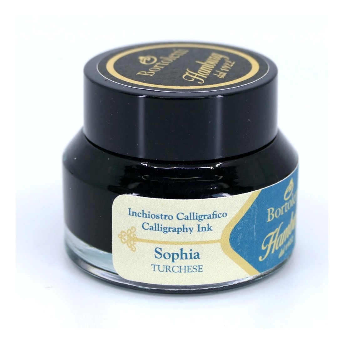 0 Bortoletti Turkoosi kalligrafia, tunnetaan myös nimellä Sophia, on Italiassa tuotetun premium-kirjoitusmusteen Hamburg Musteet yksinomaan Bortoletti. Tämä tuore turkoosi sävy esittelee kirkkauden ja taiteellisen ilmaisun kalligrafiaan, kirjaimiin ja luoviin kirjoitushankkeisiin.