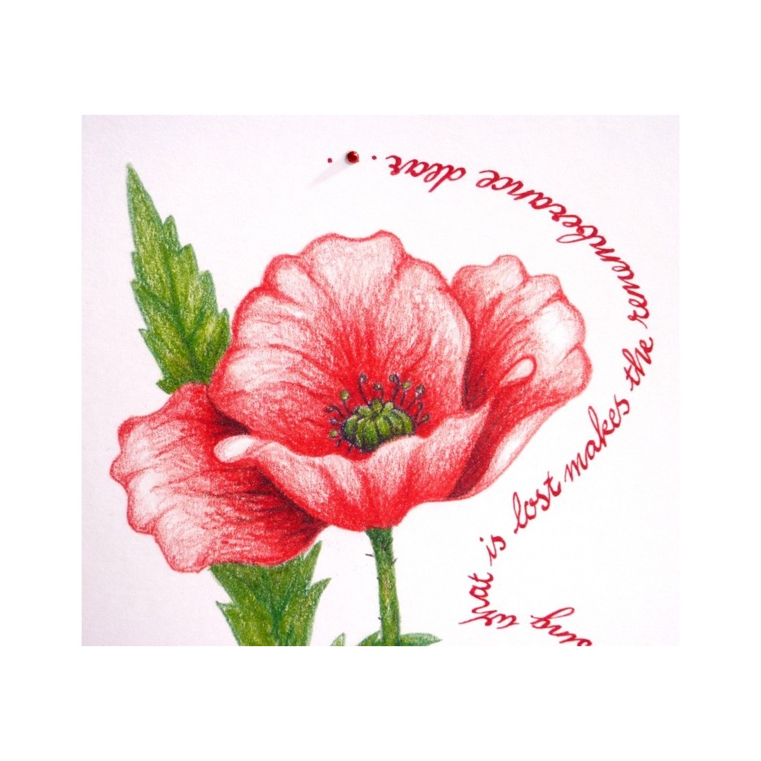 Käsintehdyt muistomerkki Poppy Greeting Card by Calligraphy Arts Janen alun perin piirretty kauniilla kädellä on kaunis unikko ja päättynyt ja viimeisteli kiitokset, joissa oli entwiged calligrafia sanamuoto ja herkkä Diamante-yksityiskohta. Suunnittelu sisältää sanoja, joita käytämme unikon muistaa. Ylistys, mitä katoaa tekee muistoksi rakas. Vain englanniksi.
