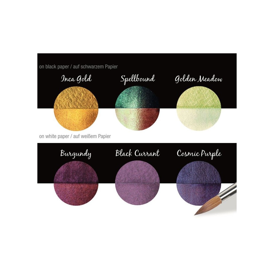 Tämä sarja on ihanteellinen kaikille, jotka haluavat lisätä metallista loistoa, ilmaisevaa syvyyttä ja silmiinpistävää yksityiskohtaa kortille, kutsut, kirjoitusprojektit ja taideteokset. Koordinoitu paletti helpottaa sekä harmonisten mallien ja silmiinpistävien kontrastien luomista.