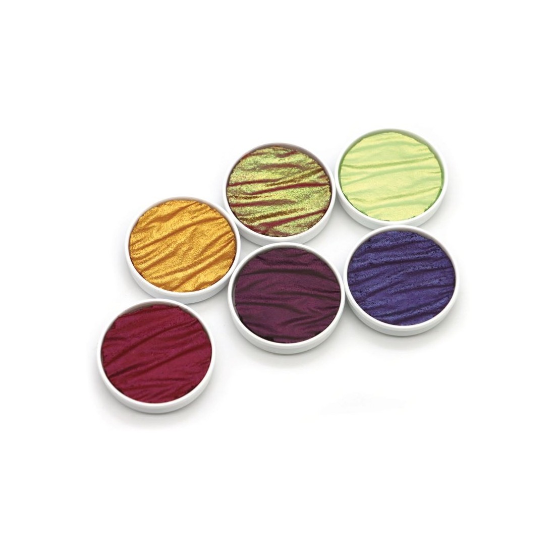 Coliro "Getaway" Pearlcolor Set on kauniisti kuristettu kokoelma, joka on luotu taiteilijoille, kalligrafeille ja valmistajille, jotka haluavat paletin, joka tuntee rikkaat, ilmeikäs ja täynnä luovaa mahdollisuutta. Purple-metallikotelossa tämä asetus yhdistää kuusi erottuvaa hohtavaa sävyä, jotka tarjoavat lämpöä, draamaa ja elinvoimainen kontrasti: