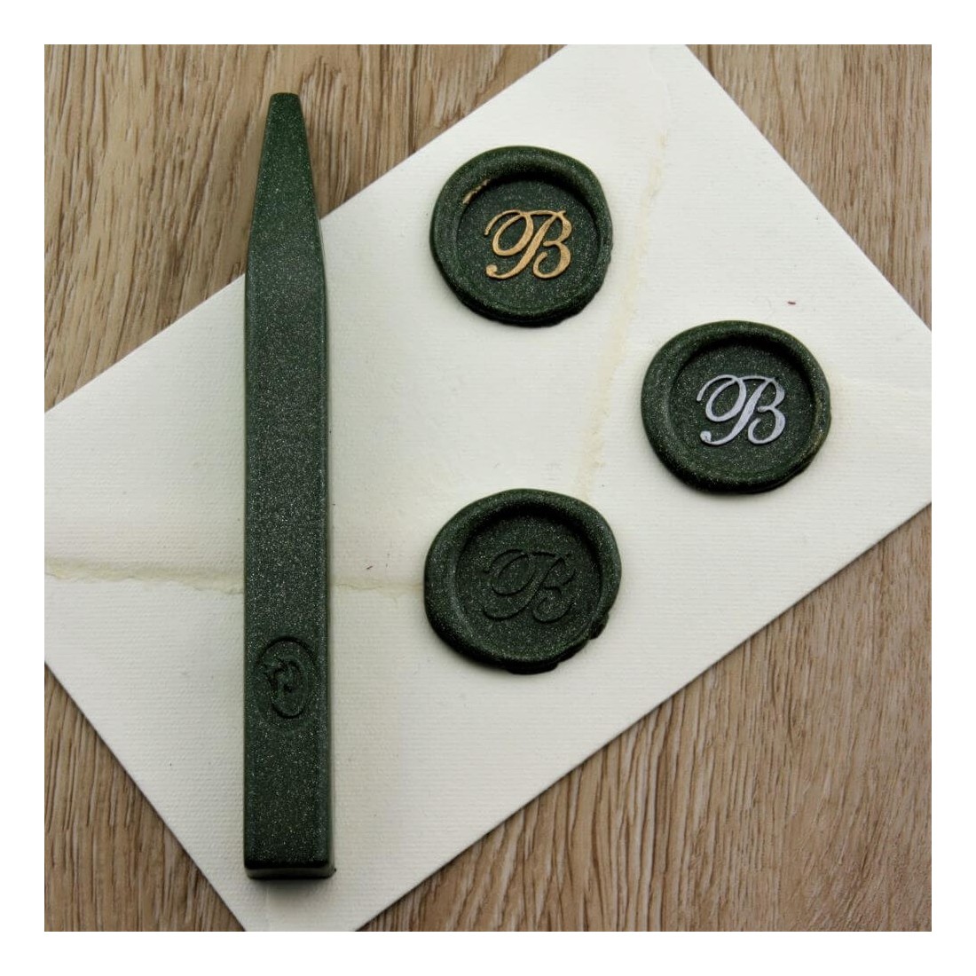 Riche, lumineux et élégant, Bortoletti La cire d'étanchéité verte métallique ajoute une finition métallique sophistiquée à des motifs de scellement traditionnels et de papeterie contemporaine.