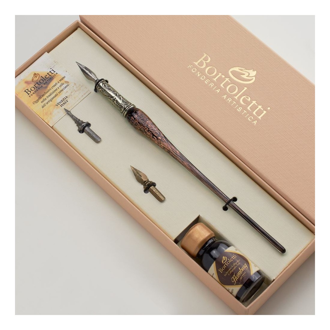 La calligraphie est enracinée dans des siècles de la tradition d'écriture, des treilles anticipé de la fin de la fin du septième siècle au développement de la pointe des métaux au début du XIXe siècle. L'ensemble d'Alvise reflète cette longue histoire en réunissant une inspiration historique et un artisanat moderne dans un stylo conçu pour le calligraphe et l'enthousiaste d'écriture d'aujourd'hui.