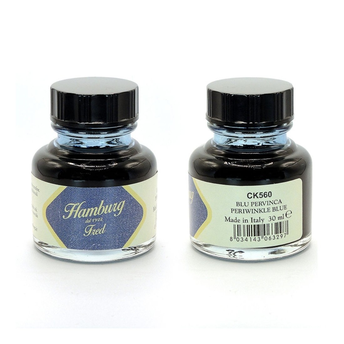 Hamburg Encre de calligraphie - Periwinkle Blue (Fred) est une encre de stylo de 30 ml de haute qualité développée à l'aide d'une expertise traditionnelle de l'encre européenne. Offrant un flux lisse et un ton bleu perossineux, il est idéal pour la calligraphie, les lettres et l'écriture décorative.