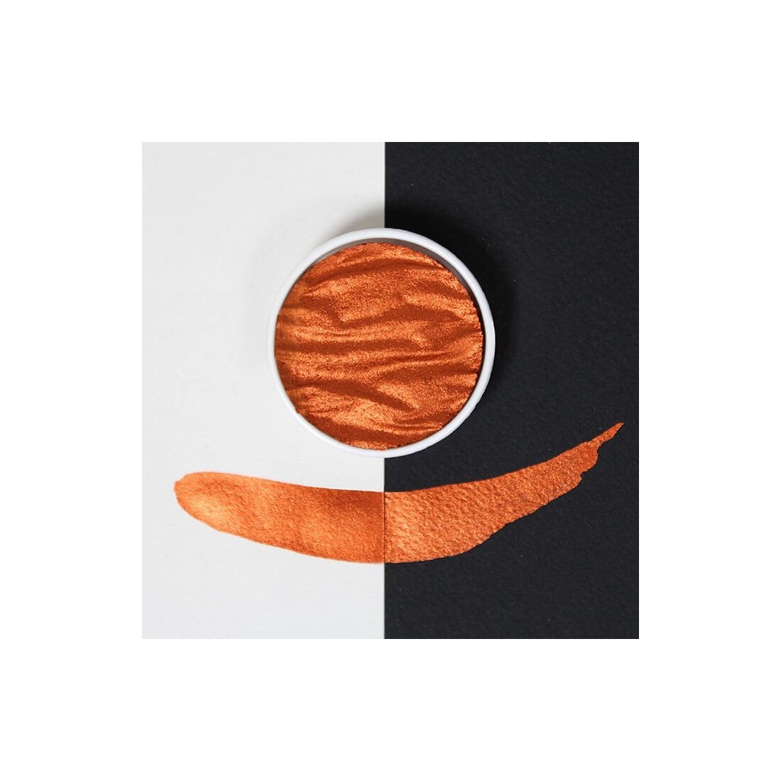 La recharge Indian Summer Pearlcolor, fabriquée à la main en Allemagne, offre un éclat métallique doré et chaud. Comprend des emballages étiquetés pour une utilisation dans une boîte à palettes en métal.