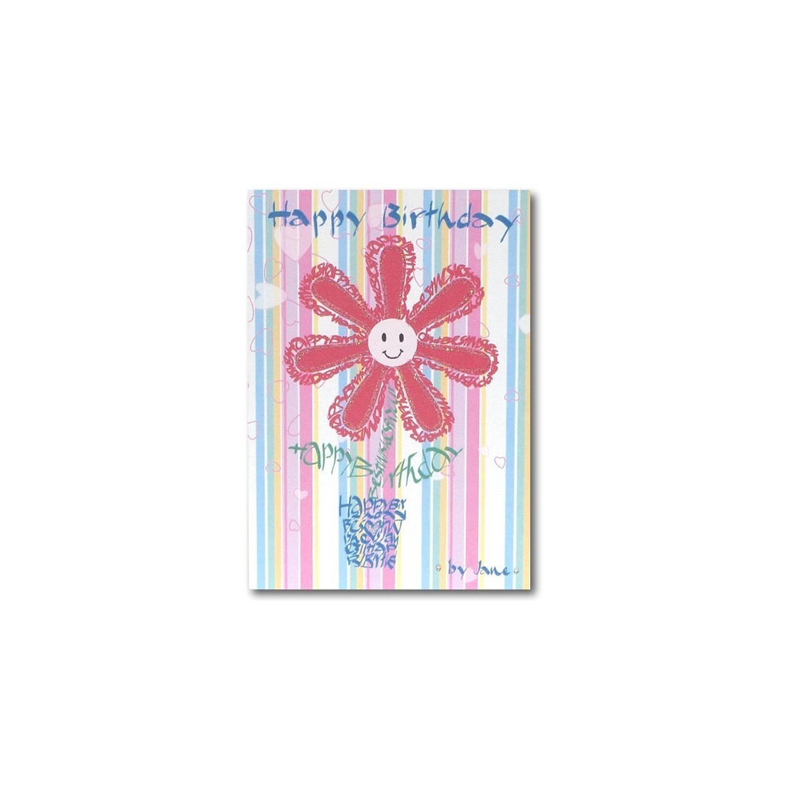 La carte de fleur de bonne anniversaire de marguerite Calligraphy Arts est une carte d'anniversaire artisanale unique conçue par Jane, en forme de forme de marguerite joyeuse et a fini de formuler des paillettes, des diamants et une formulation inspirée de la calligraphie.