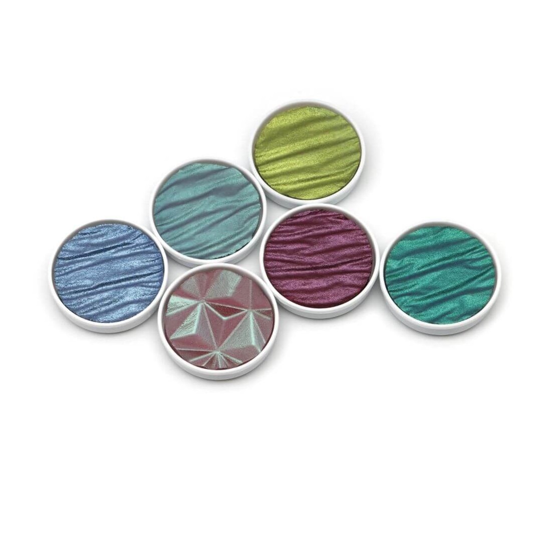 Fabriqué avec un mica, un minéral naturel qui crée une grande variété de nuances métalliques et chatoyantes, cet ensemble s'active facilement avec une petite eau et adhère des surfaces absorbantes, telles que du papier, du bois, du gypse et de la pierre. Les casseroles peuvent être retirées de la boîte et les couleurs de remplacement sont disponibles, ce qui en fait un ensemble pratique pour une utilisation créative régulière ainsi que des projets spéciaux.