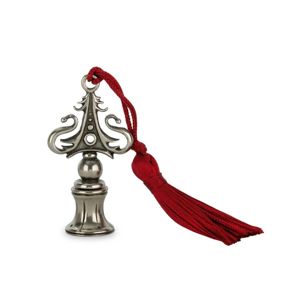 Bortoletti Maniglia per timbro sigillo cera - Landi È un elegante accessorio sigillante veneziano fatto a mano in bronzo con una raffinata finitura placcata in nichel-argento e nappa colorata decorativa. Progettato per l'uso con intercambiabile 22 mm Bortoletti Francobolli di tenuta a cera, offre un modo senza tempo e versatile per personalizzare articoli di cancelleria, inviti, confezione regalo e progetti di tenuta cera creativa.