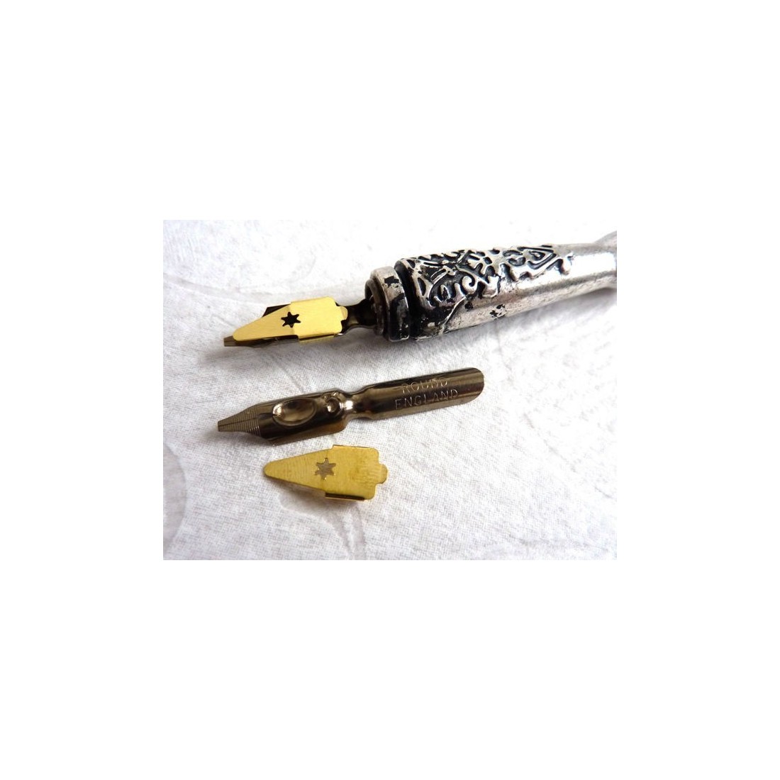 Scopri Manuscript Picchetti e serbatoi a mano rotondi a Calligraphy Arts Regno Unito, una scelta pratica per calligrafia tradizionale dip-pen. Realizzato nel Regno Unito, queste pennini in acciaio con serbatoi in ottone sono disponibili in dieci dimensioni e aiutano i principianti e gli esperti calligrafi scrivono più a lungo con meno tuffi nell'inchiostro.