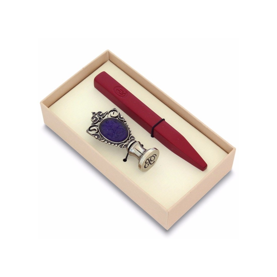 Per una finitura ancora più decorativa, i dettagli sollevati del sigillo di cera possono essere evidenziati usando Bortoletti crema di cera, disponibile in vasi di oro o d'argento. Questo è un modo semplice per far risaltare le iniziali, i simboli e i dettagli incisa, aggiungendo contrasto extra e una finitura più lussuosa al tuo sigillo completato.