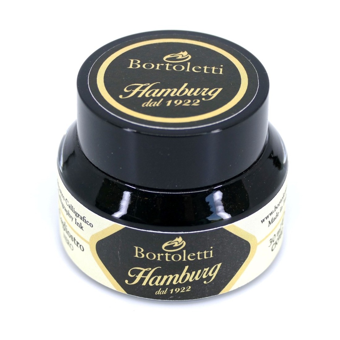 Bortoletti Inchiostro calligrafia - Nero (Cagliostro) è un inchiostro premium da 30 ml di immersione prodotto in Italia da Hamburg per Bortoletti. Fornito in una bottiglia di vetro largo per un facile accesso al nib, fornisce flusso regolare e colore nero profondo ideale per calligrafia e lettering.