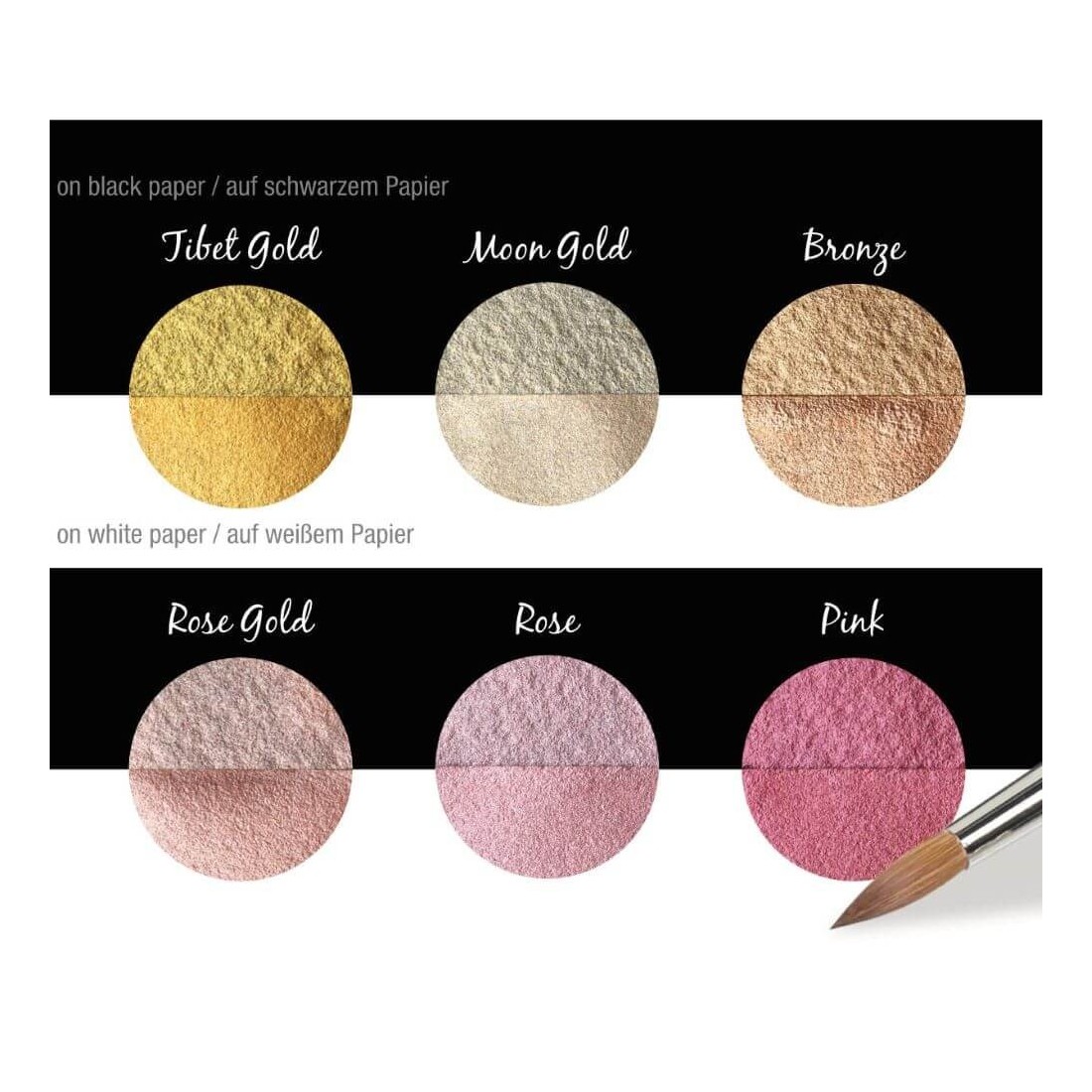 Realizzato con Mica, un minerale naturale che crea un'ampia varietà di effetti metallici e luccicanti, questo set si attiva senza intoppi con una piccola acqua e aderisce magnificamente a superfici assorbenti come carta, legno, gesso e pietra. Le padelle possono essere rimosse dalla scatola e sono disponibili i colori sostitutivi, rendendolo un set pratico per entrambi i lavori creativi di tutti i giorni e progetti attentamente pianificati.