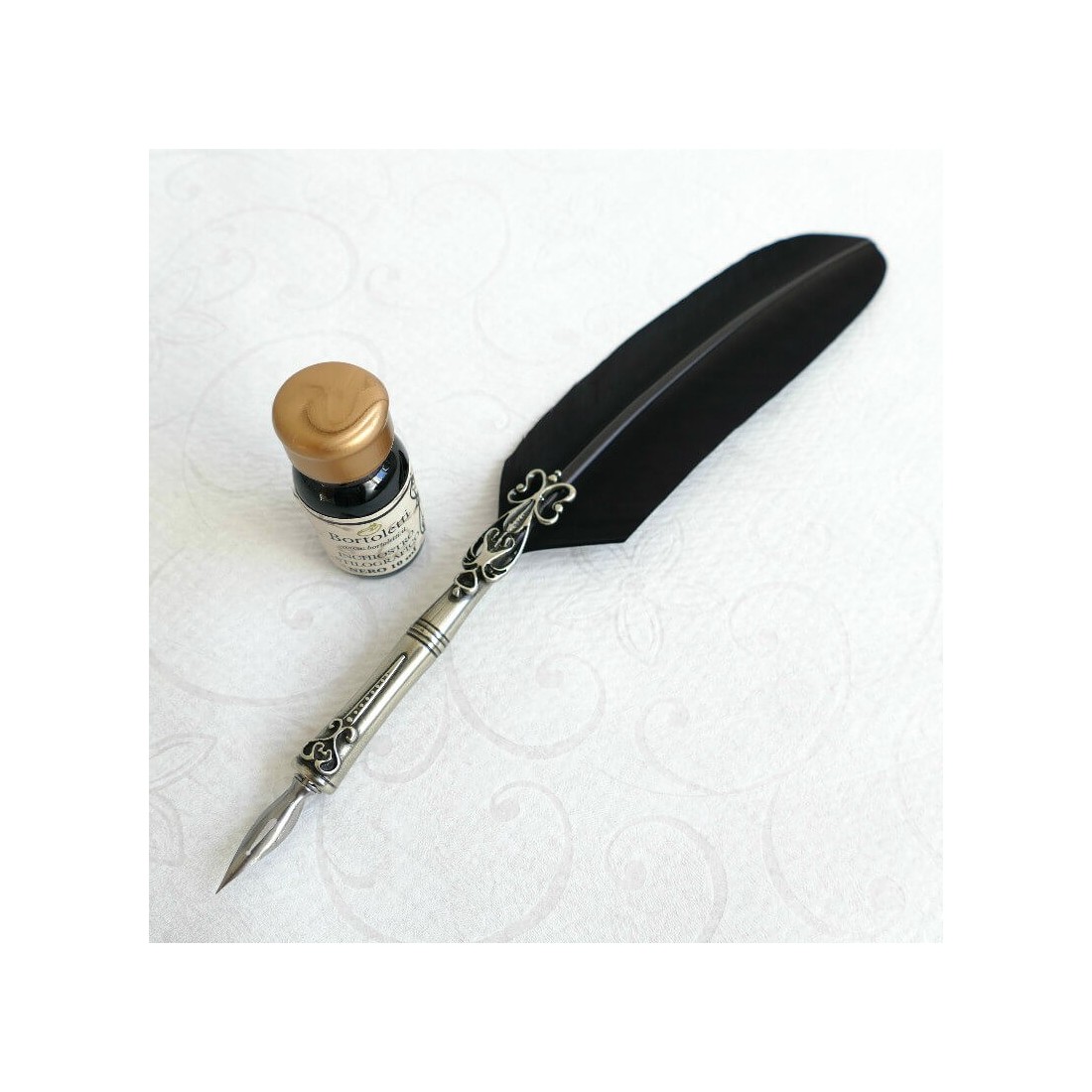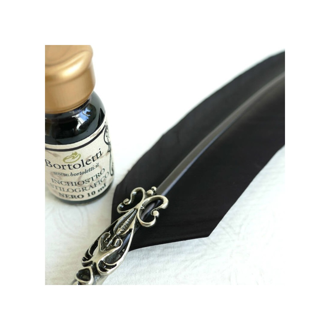 Bortoletti Klassieke zwarte veer dip pen set80 met 2 penpjes en inkt