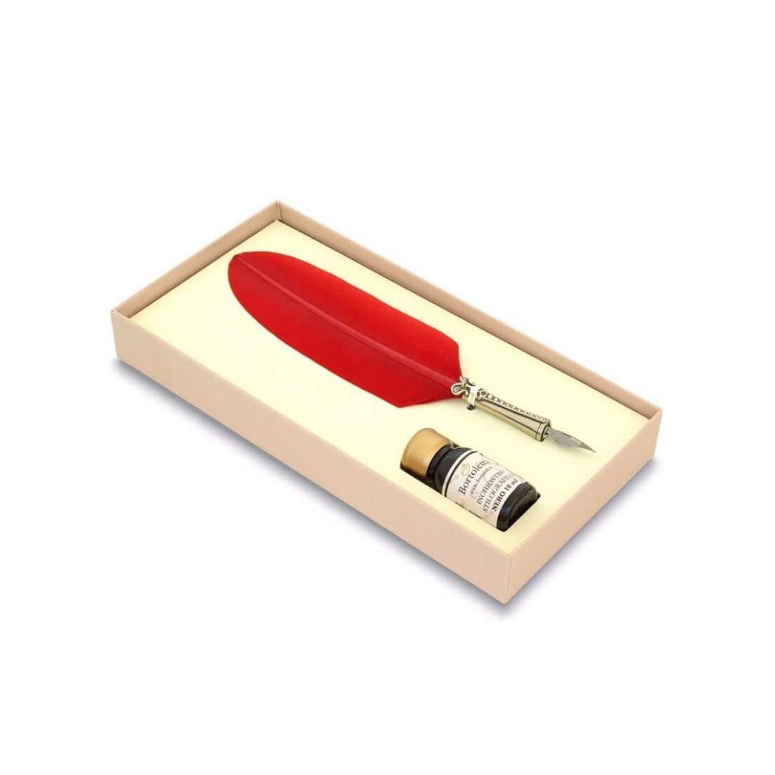 Bortoletti Classico Red Feather Quill Pen en Ink Set83