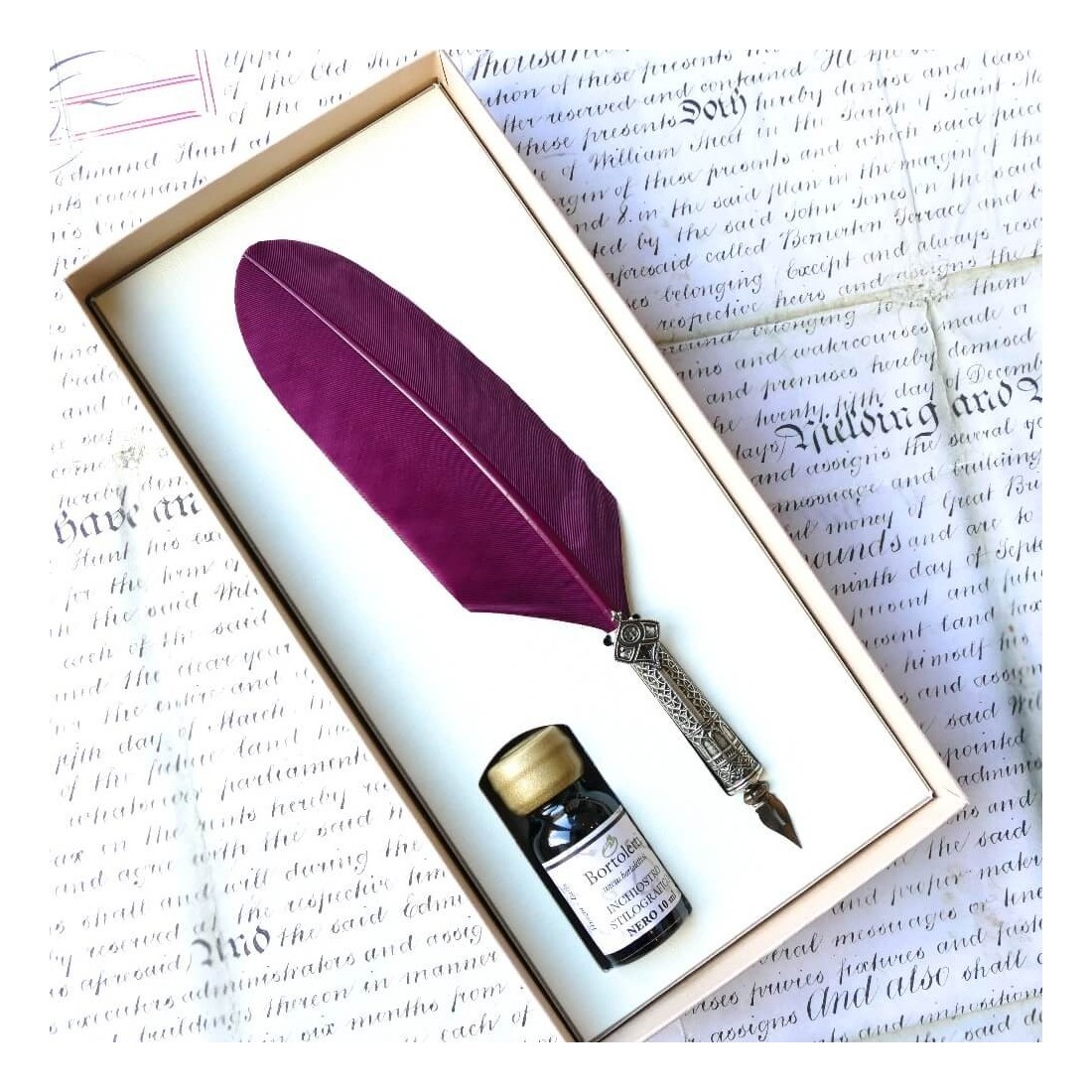 Bortoletti CA 'd'Oro Bourgondy Feather Quill Pen en Ink Set