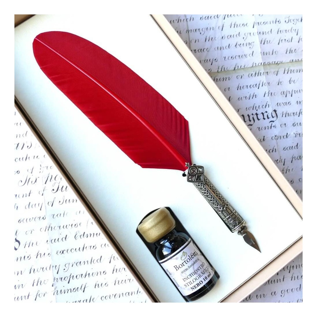 Bortoletti Ca 'd'oro rode veer quill pen en inkt set