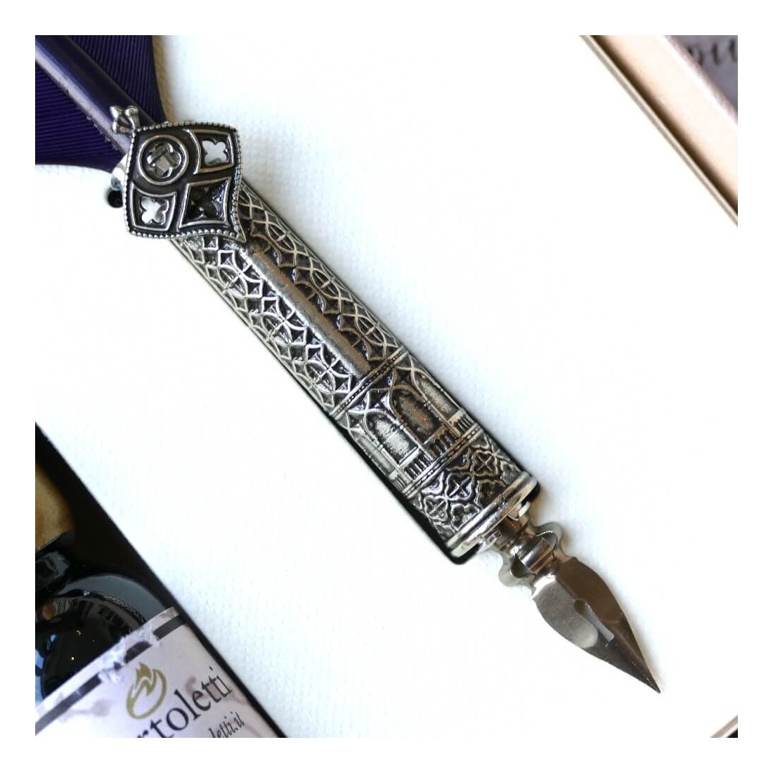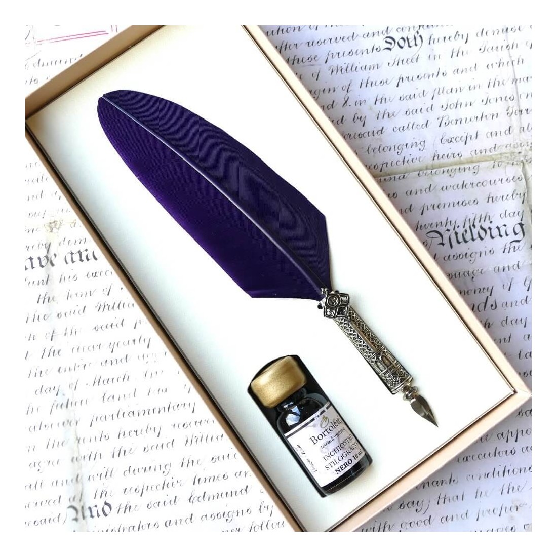 Bortoletti Ca 'd'oro paarse veer quill pen en inkt set