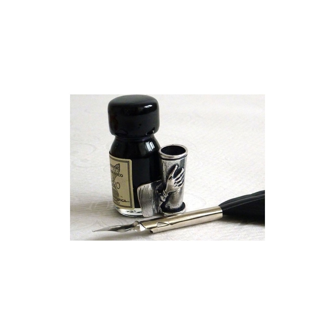 Denna uppsättning innehåller La Kaligrafica Liten svart fjäder kalligrafi penna, en flaska svart bläck och en tennkillshållare. Kombinationen skapar en väl presenterad skrivsats som är redo att använda eller ge som en gåva.