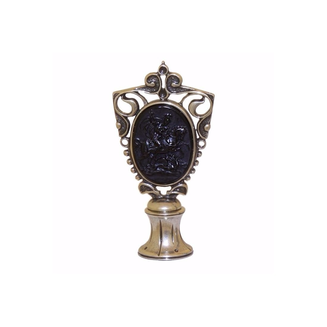 Den Bortoletti Saint George Murano glas vaxtätning är en raffinerad dekorativ tätning handgjord i Italien och inspirerad av klassisk och religiös ikonografi. Kombinera fast brons med ett detaljerat Murano-glas Cameo, är detta eleganta stycke utformat för kunder som uppskattar arv hantverk, symboliska skrivbordstillbehör och särskiljande tätningsverktyg med varaktigt konstnärligt värde.
