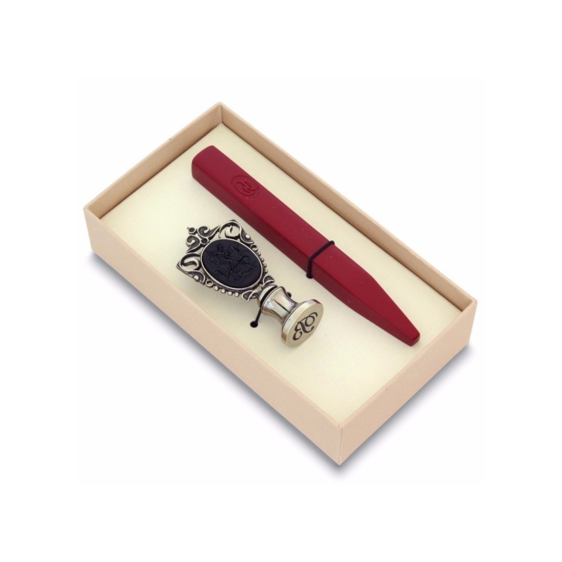 För en ännu mer dekorativ finish kan de upphöjda detaljerna i din vaxtätning markeras med användning av Bortoletti vaxkräm, tillgänglig i krukor av guld eller silver. Det här är ett enkelt sätt att ta fram initialer, symboler och inristade detaljer, vilket ger extra kontrast och en mer lyxig finish till din färdiga försegling.