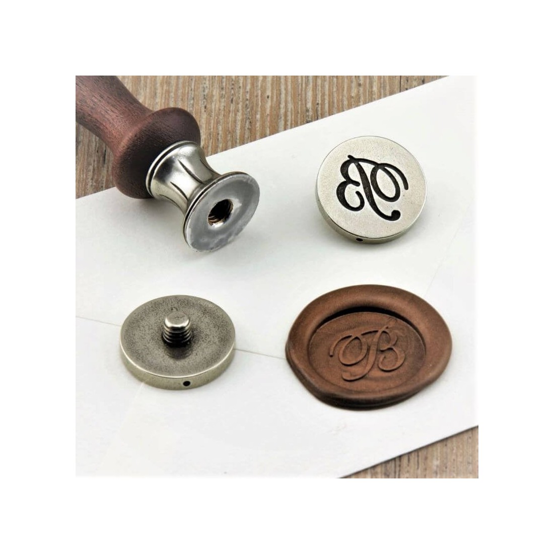 Trävaxens tätningshandtag är utrustat med ett utbytbart system, så att du kan anpassa den inställda med din valda design. Alternativen inkluderar kursiv bokstäver, Dubbel initialer, Gotiska bokstäver, och dekorativa symboler. Detta gör Sospiri-setet särskilt lämpligt för bröllopsinbjudningar, monogrammed brevpapper, skräddarsydda presentförpackning och elegant personlig korrespondens.