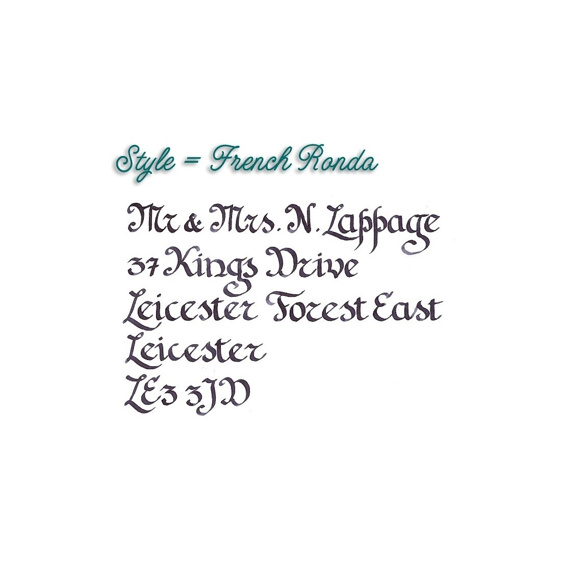 Den Calligraphy Arts Handskriven kort service med inlägg ingår kan du skicka en vackert personlig hälsning utan att skriva eller lägga ut det själv. Ditt valda kort kommer att skrivas med ditt personliga meddelande i ett av åtta eleganta kalligrafi-stilar och publiceras direkt till den adress du tillhandahåller. Det här är en anpassningstjänst, så ett kort måste också beställas separat. Endast engelska.