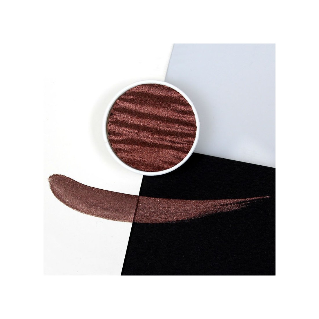 Coliro "Chocolate" kommer i märkt pappersförpackning. Etiketten kan placeras inuti a Coliro Metalpalettlåda för enklare färgidentifiering senare, vilket är särskilt användbart när man bygger en personlig palett. Låt pannan torka helt efter användning och lagra den på en torr plats mellan projekt.